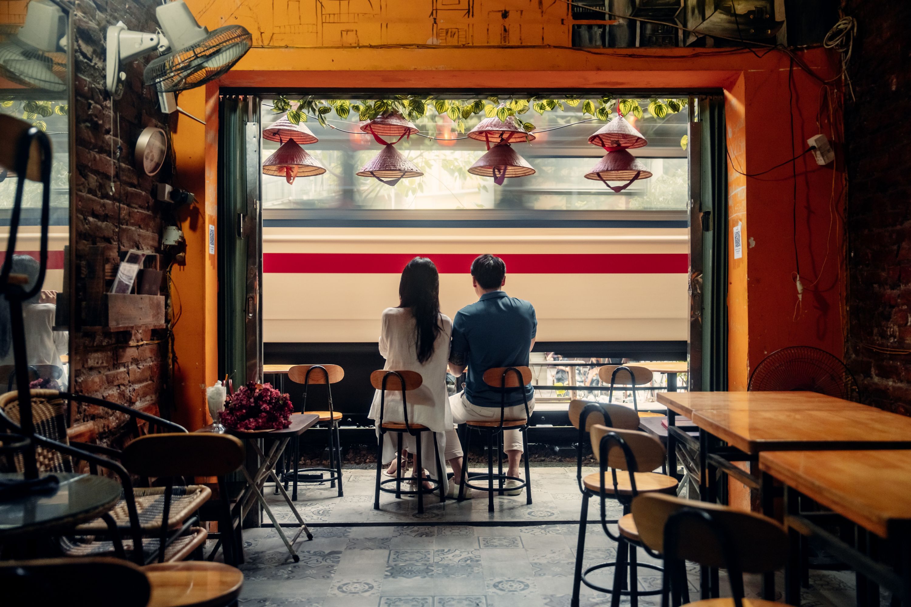 Visit Train Street and you'll find all sorts of cute, lantern-draped cafes that have capitalised on the street's popularity. They all have tables set up on the edge of the train tracks to give visitors up-close views of the passing trains. Pick one at random and enjoy coffee or lunch while you wait for the next train to come chugging along.